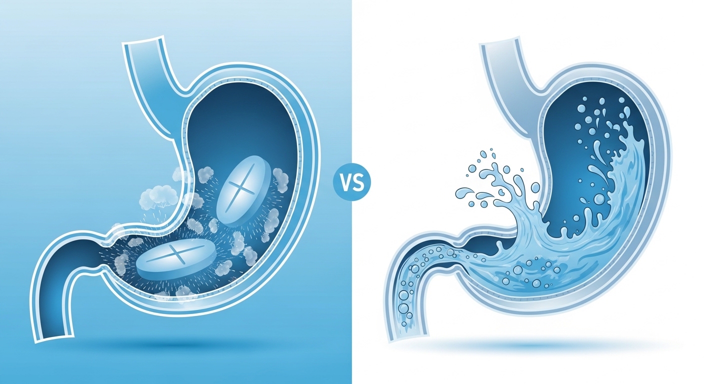 | 흡수 속도 | 보통 (위장 붕해 필요) | 매우 빠름 (즉시 흡수 시작) |