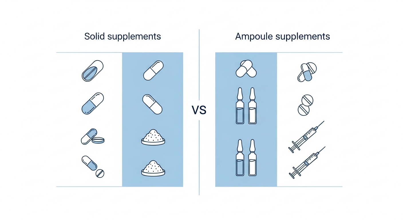 | 비교 항목 | 정제/캡슐형 | 마시는 액상형(앰플) |