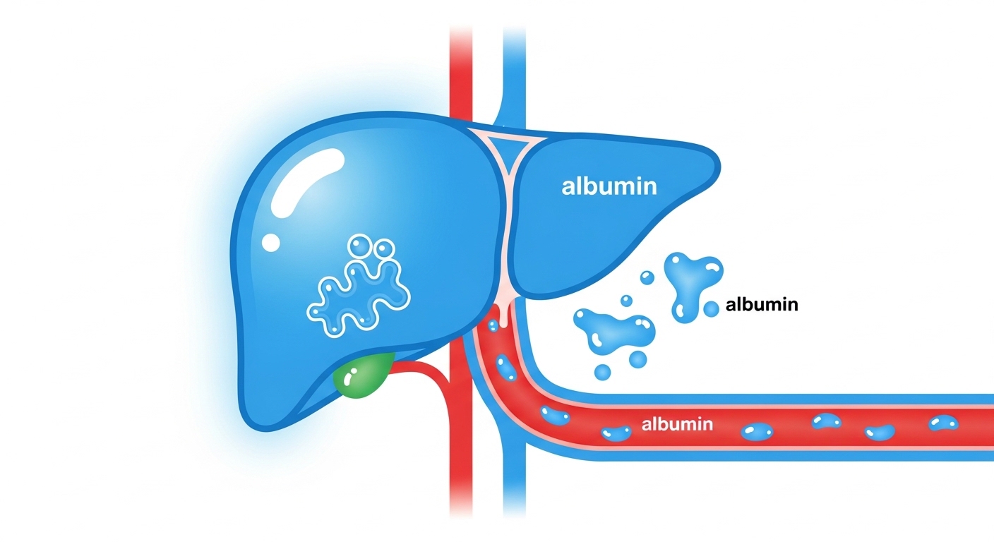 알부민은 우리 혈액 속에 존재하는 단백질 중 가장 많은 비중(약 60%)을 차지하는 성분으로, 주로 **간에서 생성**됩니다. 우리 몸의 건강 상태를 보여주는 아주 중요한 지표 중 하나입니다.