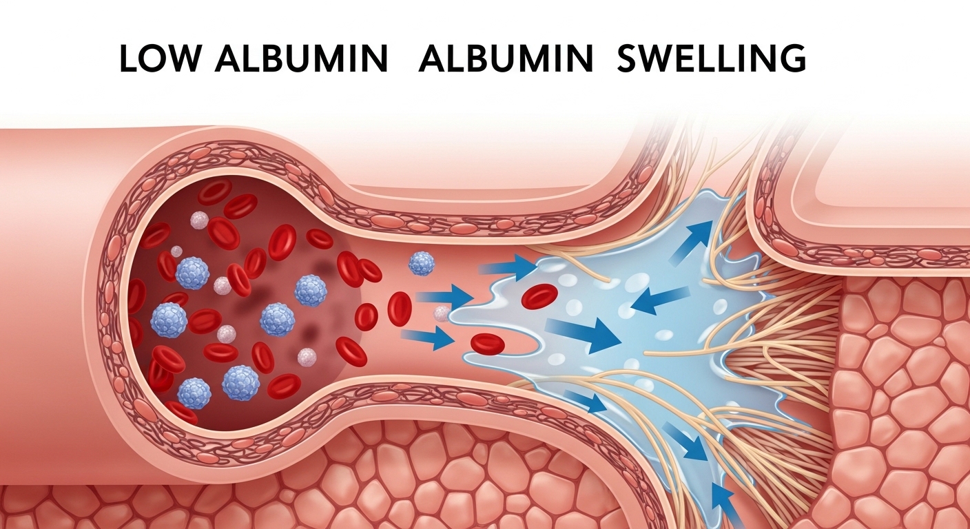 - 혈관 삼투압 유지: 혈액 속 수분이 혈관 밖으로 빠져나가지 않게 잡아주는 역할을 합니다. 알부민이 부족하면 수분이 조직으로 흘러 들어가 몸이 붓게 됩니다.