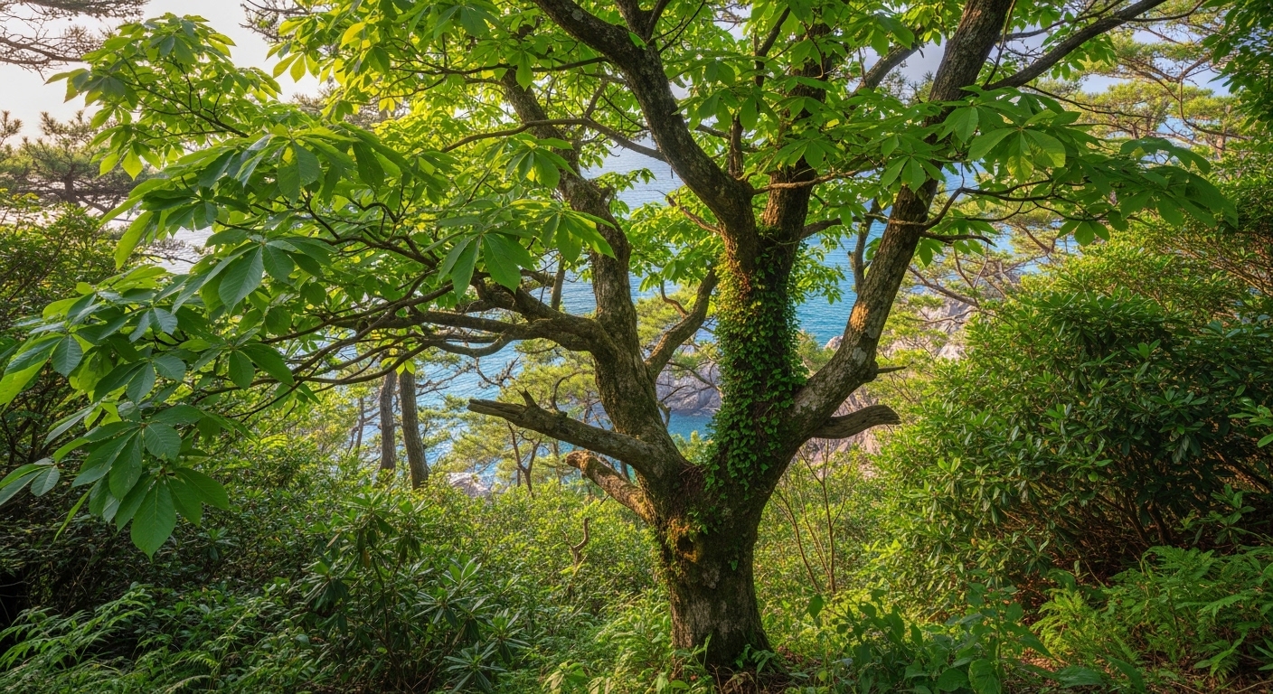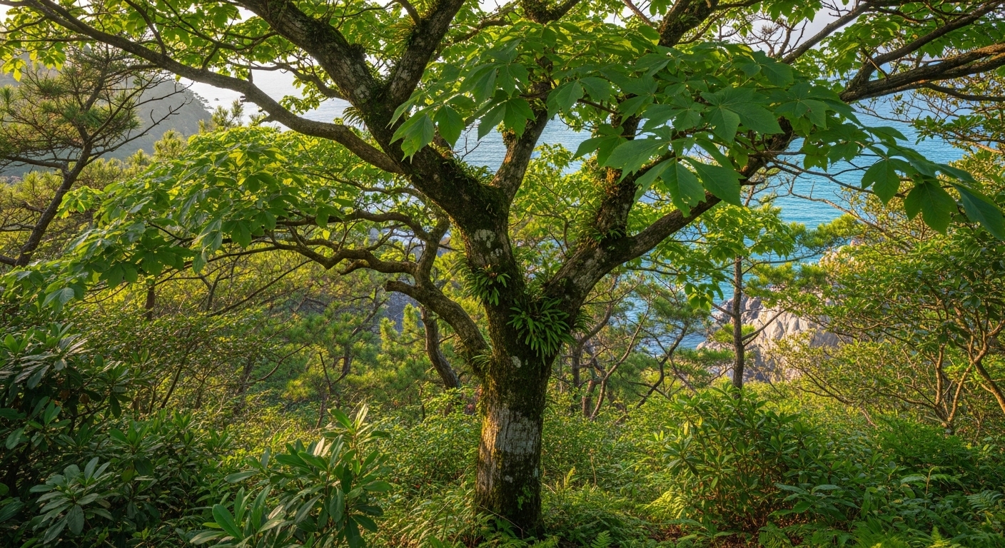 황칠나무의 학명인 'Dendropanax'는 그리스어로 **'만병통치약(Panax)을 가진 나무(Dendro)'**라는 뜻입니다. 인삼과 같은 사포닌 성분이 풍부하여 항산화 및 면역 작용이 뛰어나기 때문에 붙여진 별칭입니다.