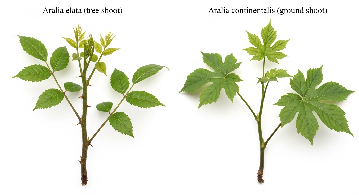 | 채취 방법 | 두릅나무의 새순을 채취 | 땅속 줄기에서 돋아나는 순 |