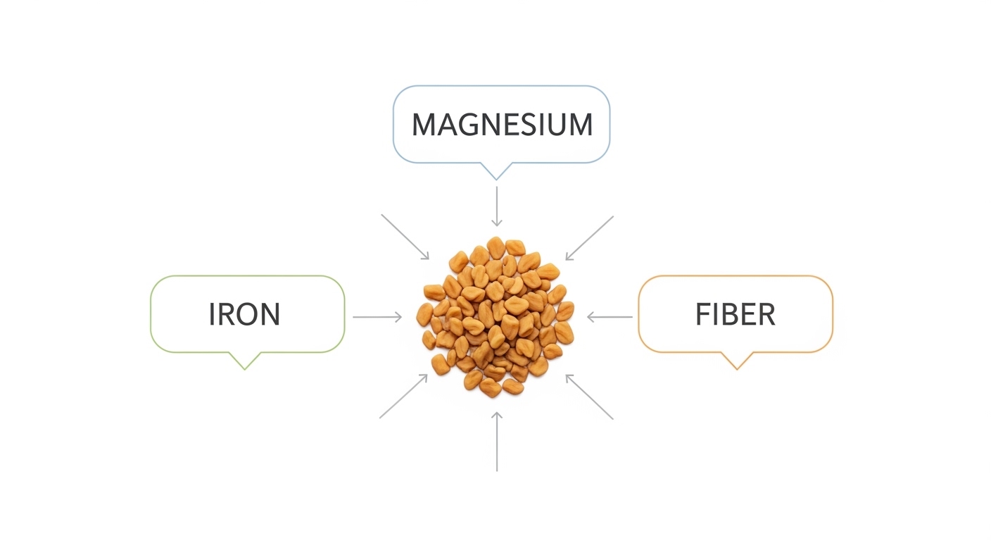 호로파 100g에는 다음과 같은 풍부한 영양소가 들어있어 소량 섭취로도 영양 밀도를 높일 수 있습니다.