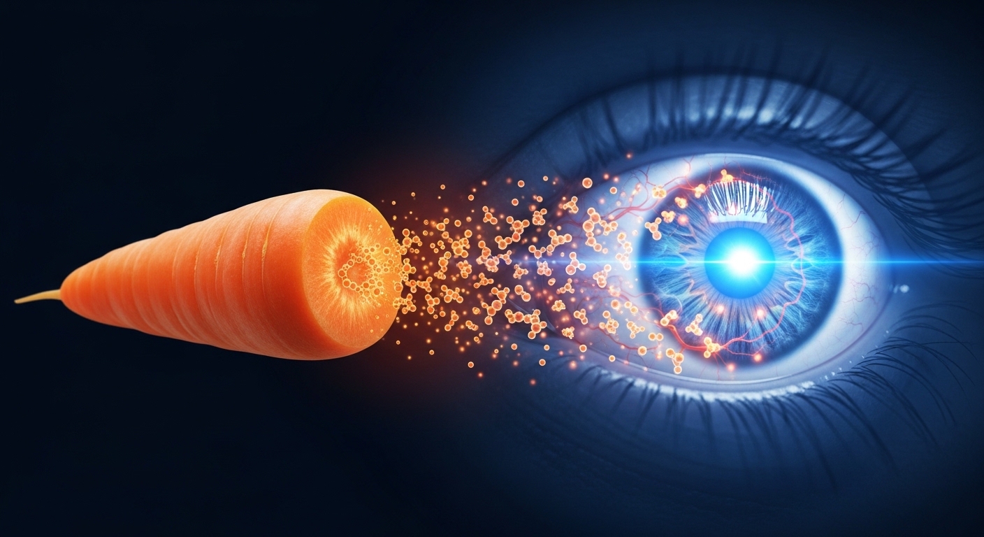 비타민 A가 부족하면 야맹증이 생길 수 있다는 사실은 널리 알려져 있습니다. 당근은 망막의 시각 회로에 관여하는 '로돕신' 생성을 도와 어두운 곳에서도 시력을 유지하게 합니다.