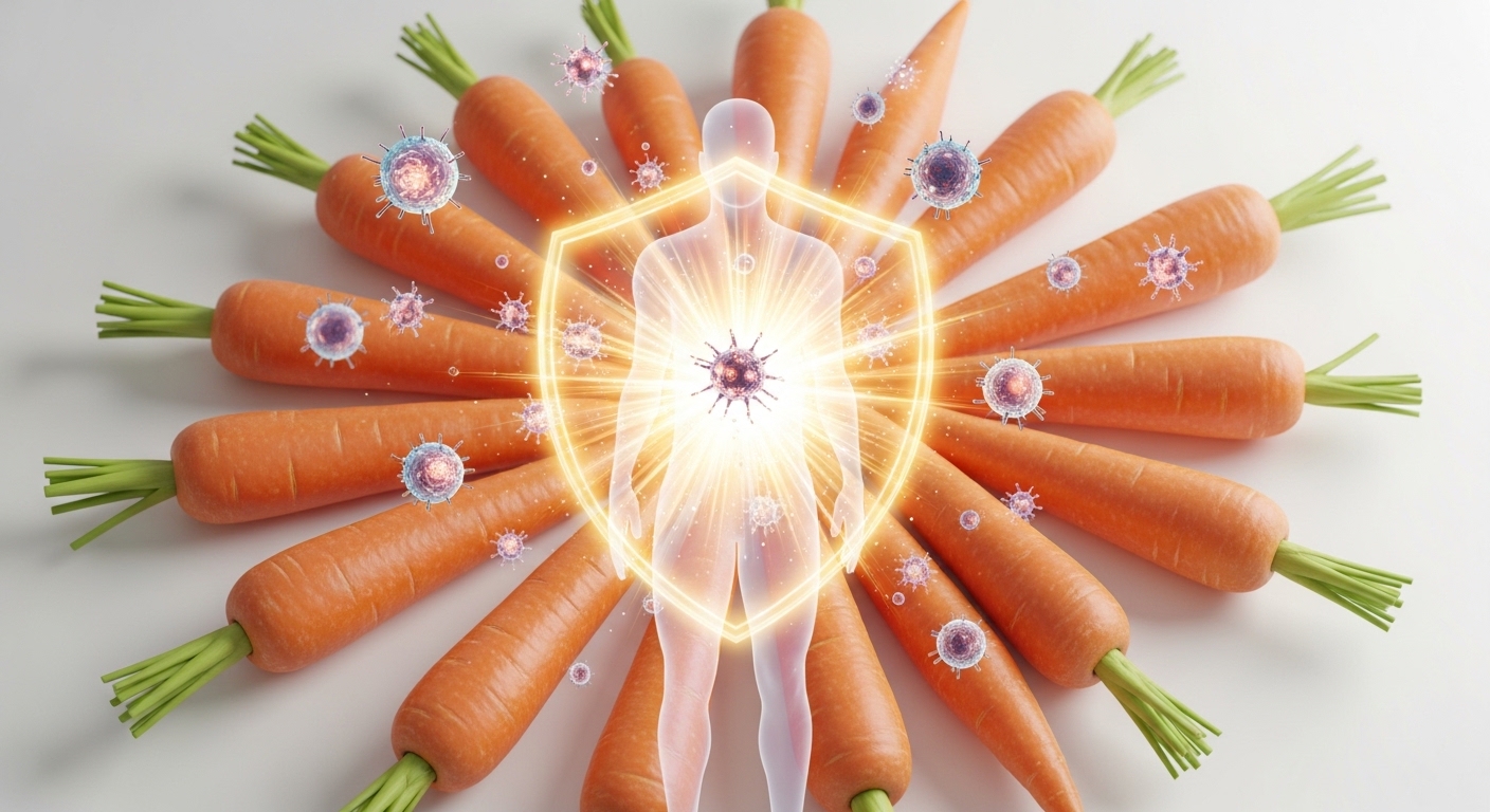 당근의 선명한 주황색은 베타카로틴(Beta-Carotene)이라는 성분 때문입니다. 이 성분은 체내에 흡수되면 비타민 A로 전환되어 '프로비타민 A'라고도 불립니다. 비타민 A는 면역 체계, 시력, 피부 재생에 필수적인 영양소입니다.