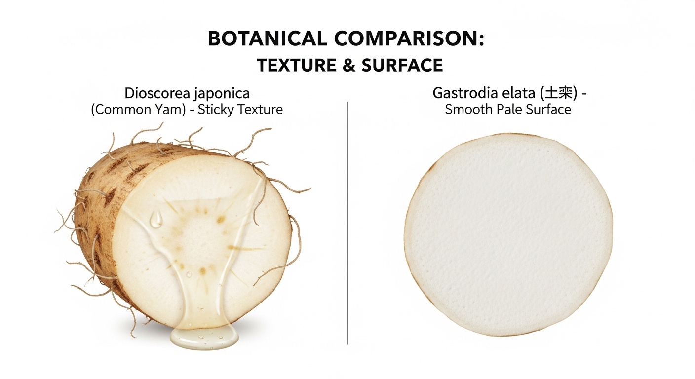 이름은 비슷하지만 두 식물은 완전히 다릅니다. 우리가 흔히 갈아 마시는 '마(산약)'는 식물학적으로 서여과에 속하며 직접 광합성을 하지만, 천마는 난초과 식물로 광합성을 하지 못합니다.