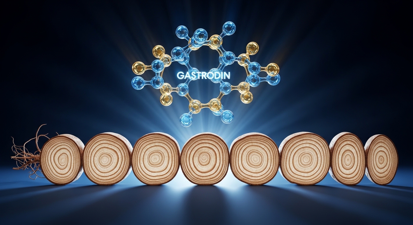 천마의 약성은 핵심 성분인 '게스트로딘(Gastrodin)'에서 나옵니다. 2020년대 들어 뇌과학 분야에서도 주목받는 이 성분은 혈관 벽의 독소를 제거하고 뇌혈류를 원활하게 하는 강력한 항산화제입니다.