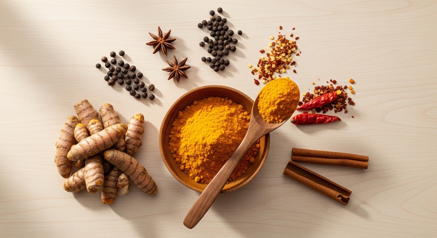 커큐민이 염증 효소(COX-2)를 억제해 체내 만성 염증을 줄여줍니다.