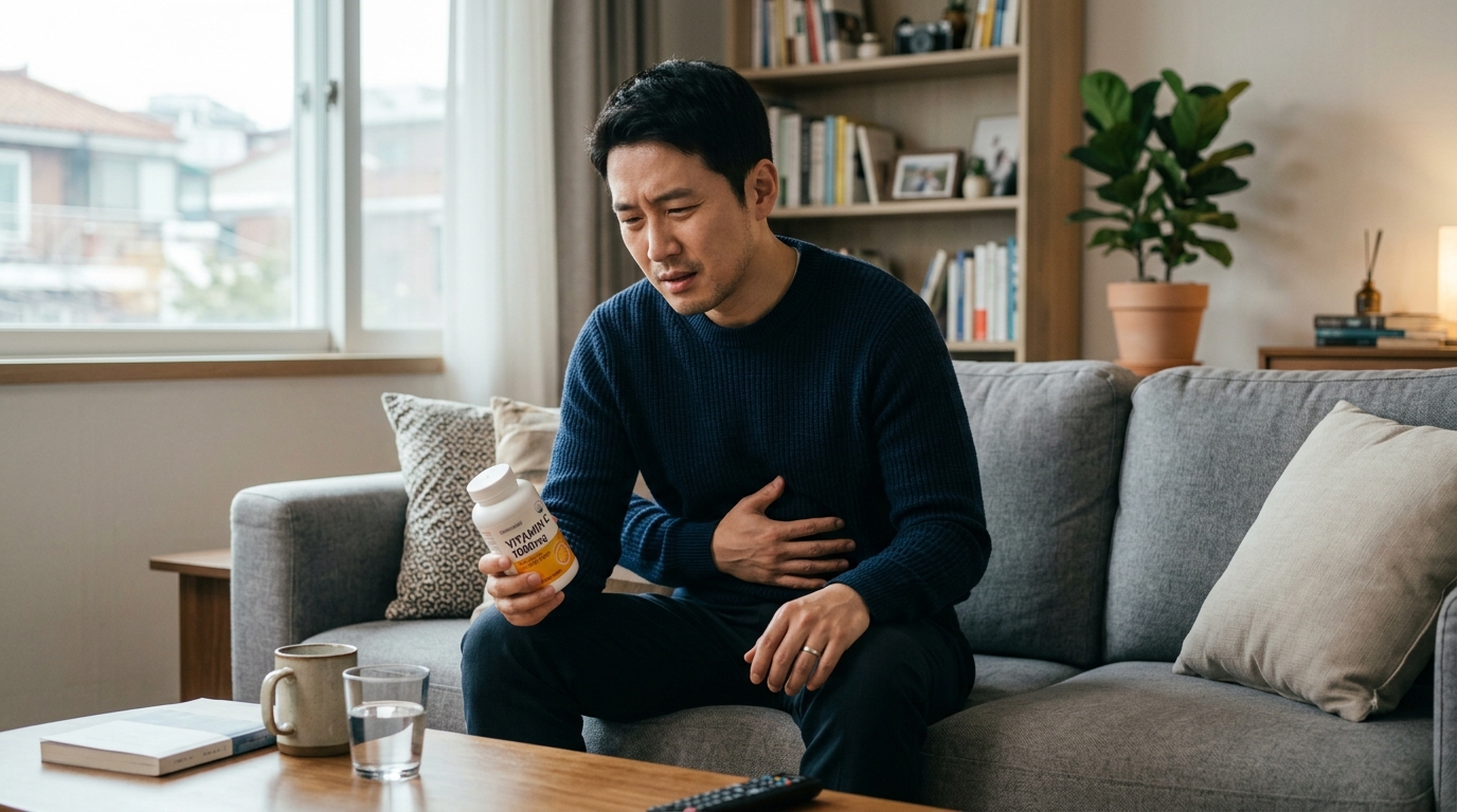 일반 고용량 비타민 C의 최대 단점은 강한 산성으로 인한 속 쓰림입니다. 리포좀 비타민 C는 산성 성분이 인지질 막에 싸여 있어 위 점막에 직접 닿는 자극을 최소화합니다.