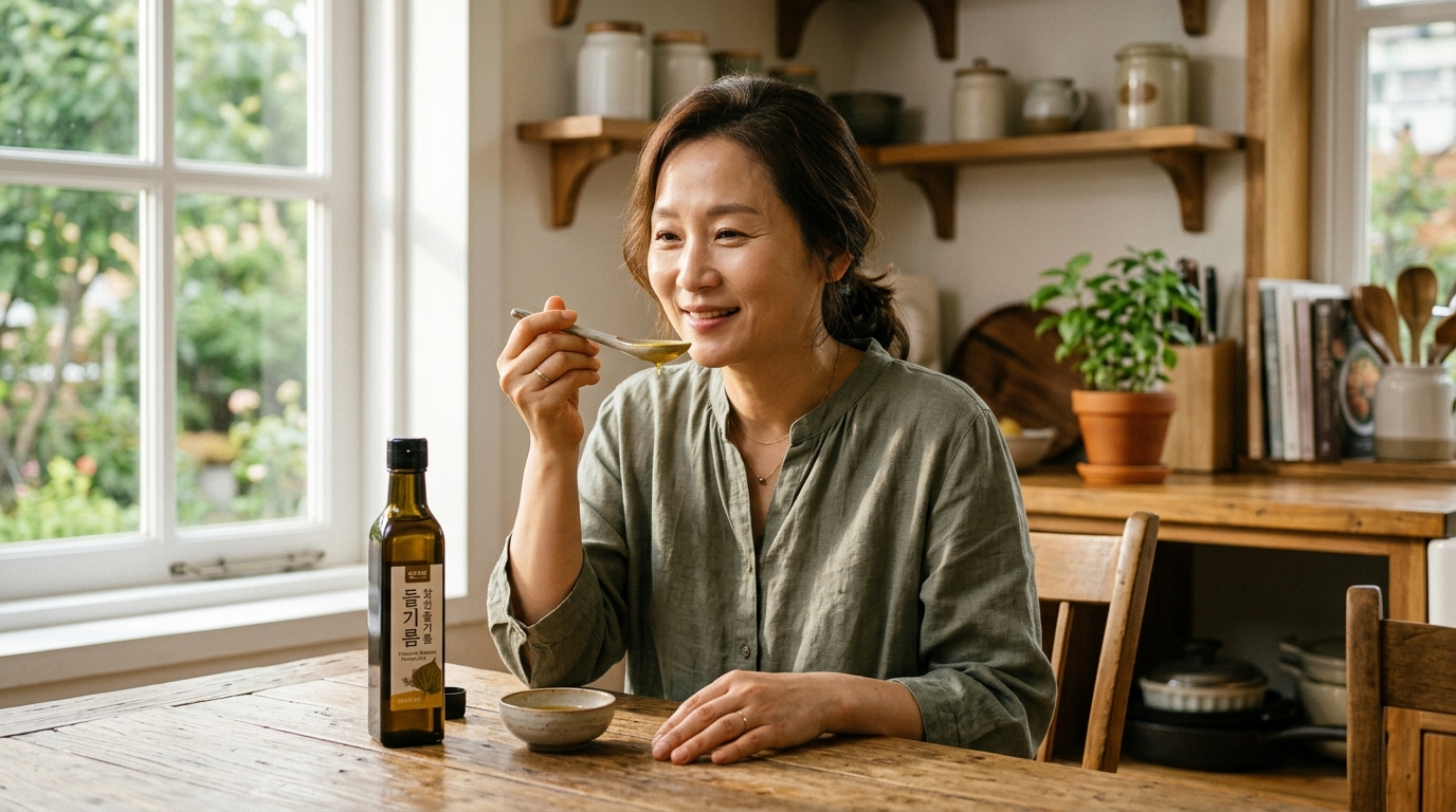 매일 아침 올리브오일을 마시는 습관이 유행이지만, 정작 우리 곁에는 그에 못지않은 최고의 건강 기름인 '들기름'이 있습니다. 저 역시 혈액 순환이 잘 안 되어 손발이 찼던 시절, 어머니의 권유로 생들기름을 한 스푼씩 먹기 시작하며 몸이 따뜻해지는 변화를 경험했습니다.