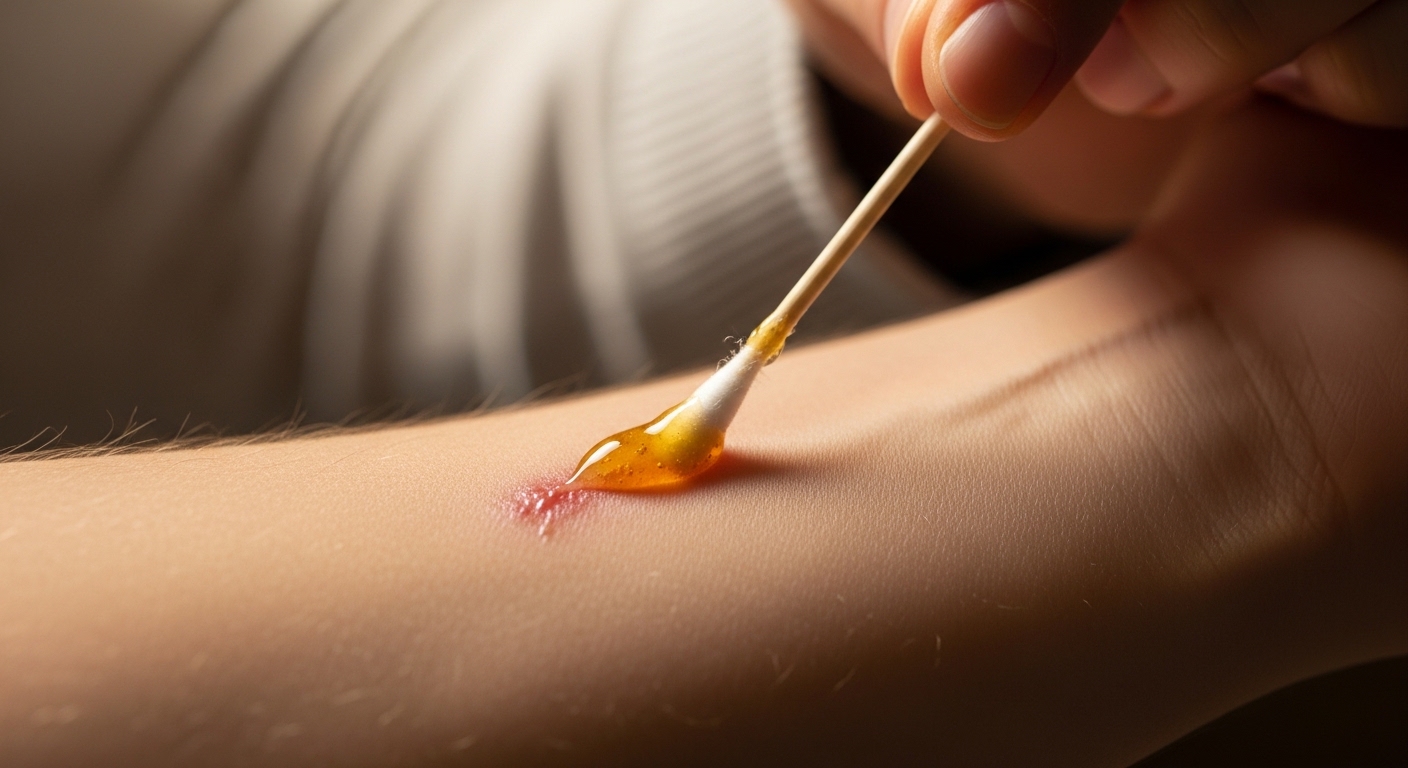 연구 진행 중고대부터 상처 치료제로 사용된 프로폴리스는 가벼운 화상에 일반 약보다 효과가 더 크다는 연구 결과가 있습니다. 원액을 베이거나 긁힌 소상처에 바르면 상처를 코팅해 세균 침입을 차단하고 회복을 돕습니다. 헤르페스(포진) 치료에도 연구 결과가 있습니다. 단, 큰 상처에는 사용하지 마세요.