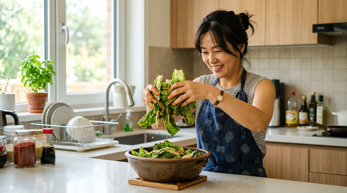 - 겉절이 양념 황금 비율: 고춧가루 3T + 액젓 2T + 매실청 2T + 다진마늘 1T + 다진파 2T.