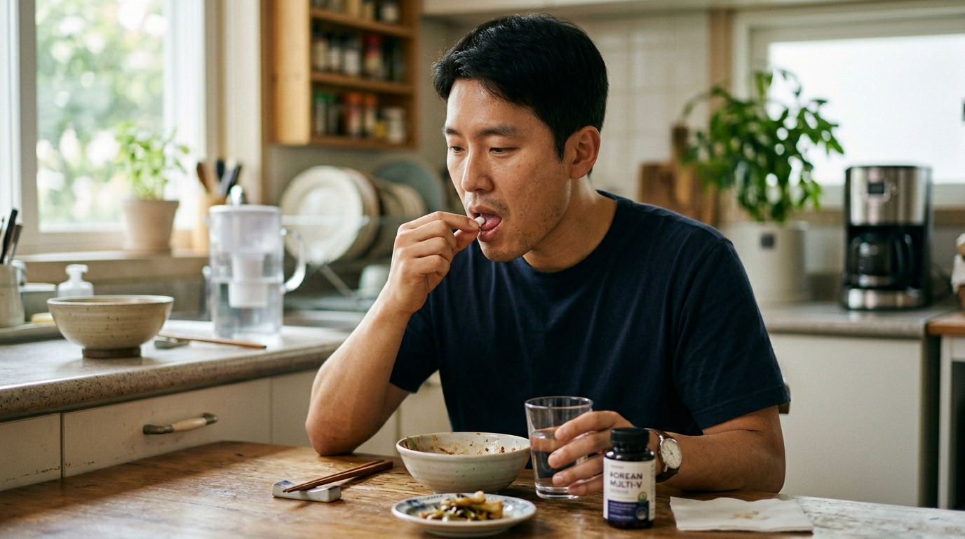 - 식후 30~60분 후 복용 — 공복 복용 시 소화 불편이 생길 수 있습니다. 어느 정도 소화된 후에 드시는 것이 좋고, 위궤양이 있다면 식사 직후 복용을 권장합니다.