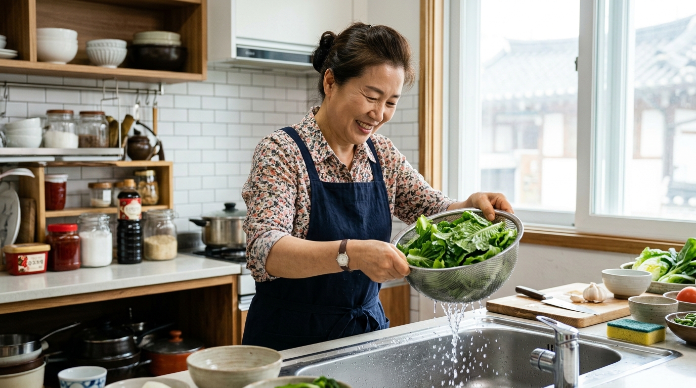 1. 절이지 않기 — 봄동은 잎이 얇고 부드러워 소금 절임 없이 바로 무쳐도 됩니다. 절이면 오히려 숨이 죽어 아삭함이 사라집니다.