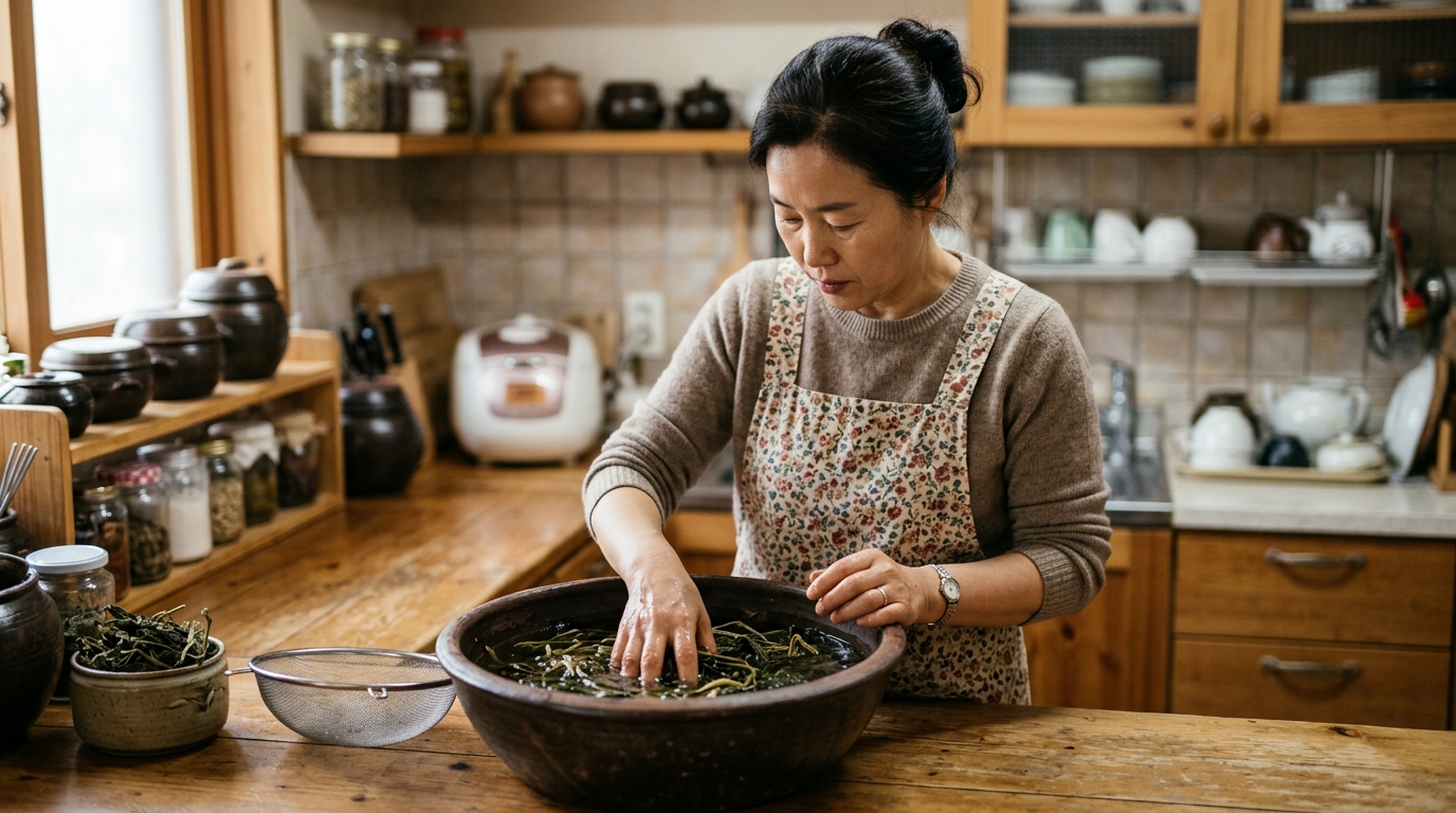 끓는 물에 설탕 2큰술을 넣고 건취나물을 삶으면 아린 맛과 군내가 줄어들고 훨씬 빨리 부드러워집니다. 센 불 15분 + 중약불 40분으로 삶으면 충분합니다.