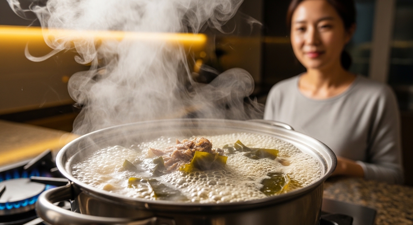 - 간 맞추기 및 완성 — 맛을 보고 소금으로 간을 조절합니다. 너무 진하면 물을 조금 더해 원하는 농도로 맞춥니다. 완성입니다!