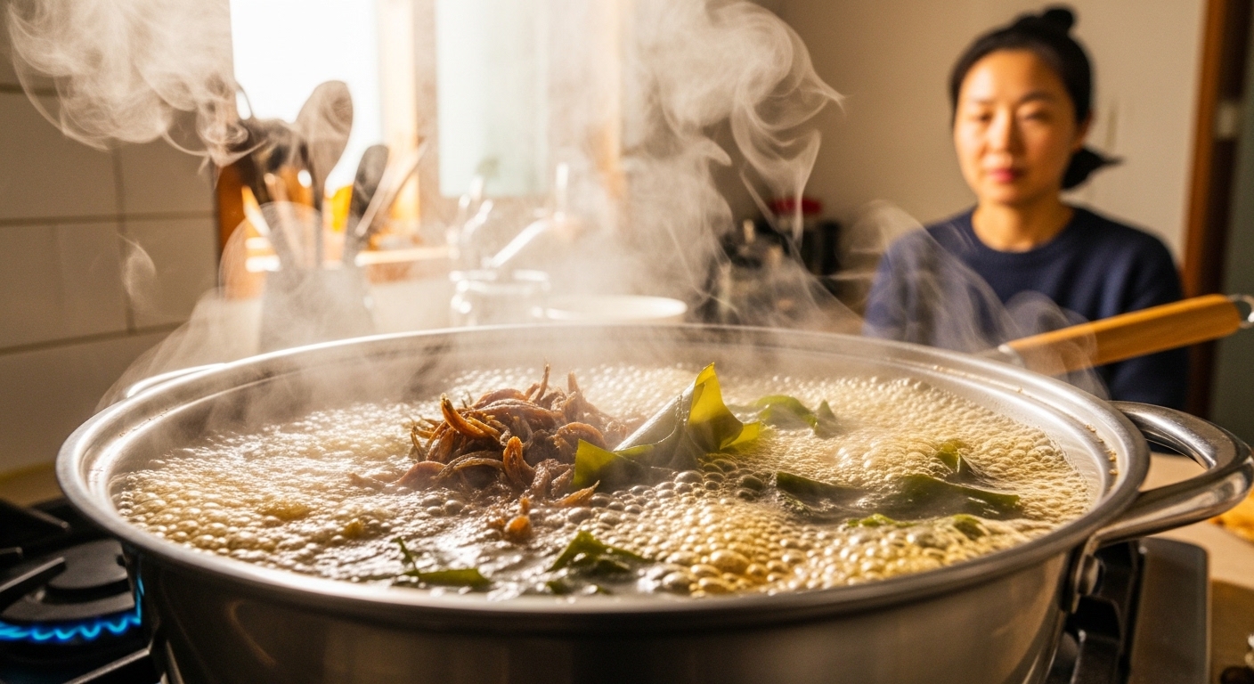 ③ 된장은 조금씩 넣기 — 한 번에 다 넣지 말고 조금씩 넣으면서 간을 맞추세요. 너무 짠 국은 물을 더해서 조절합니다.