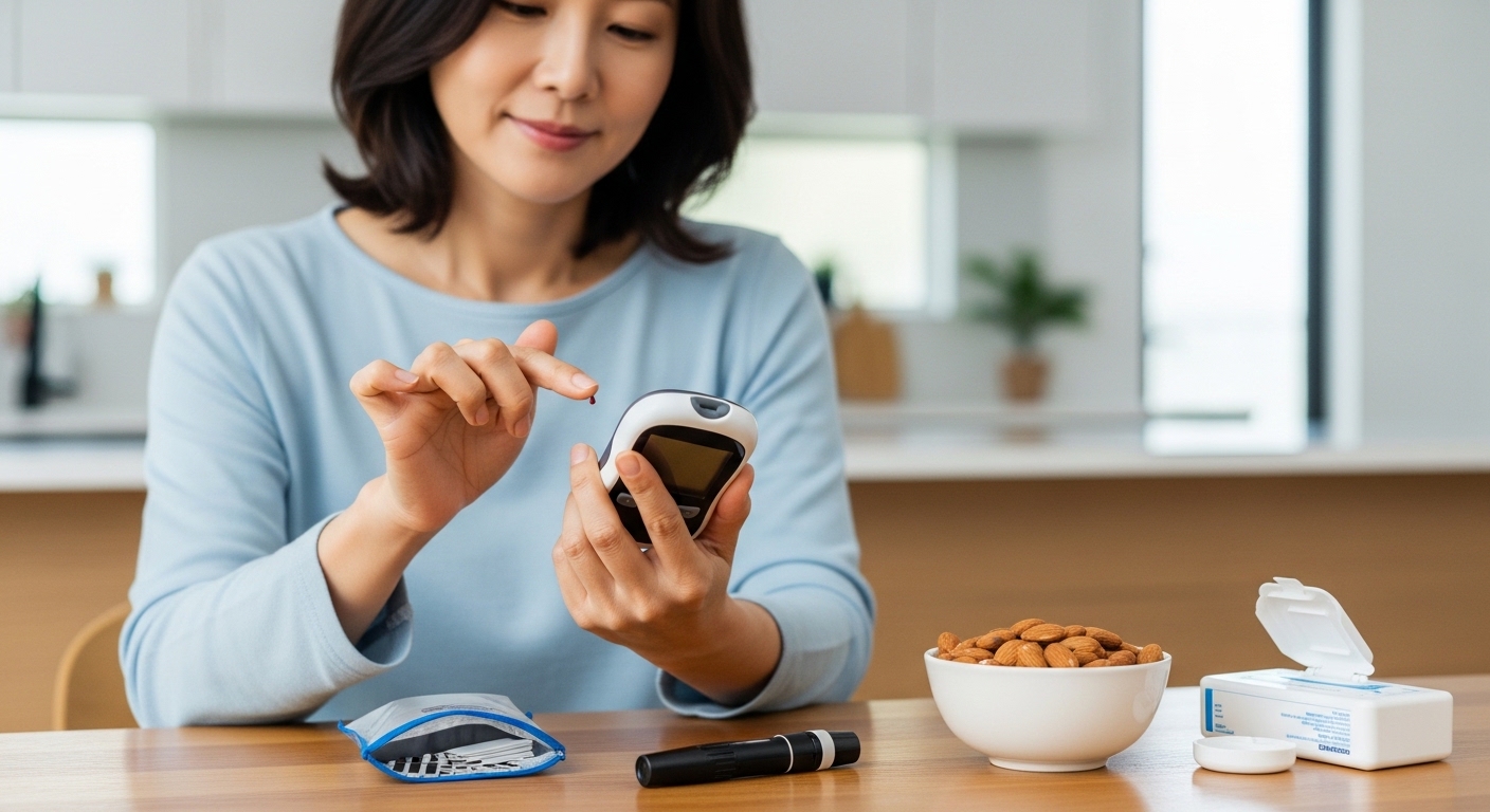 아몬드에 함유된 풍부한 마그네슘은 인슐린의 민감도를 높여 혈당 관리에 핵심적인 역할을 합니다. 식사 전이나 식사 후에 아몬드를 곁들이면 탄수화물 위주의 식단에서 발생할 수 있는 '혈당 스파이크' 현상을 완화하는 데 큰 도움이 됩니다. 이는 장기적으로 제2형 당뇨병의 위험을 낮추는 효과가 있습니다.