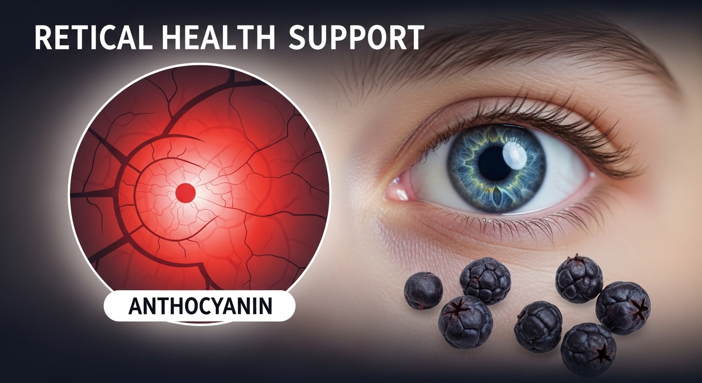 안토시아닌은 망막에 존재하는 단백질인 로돕신의 재합성을 촉진하여 눈의 피로를 풀어주고 시력 저하를 방지하는 데 도움을 줍니다.