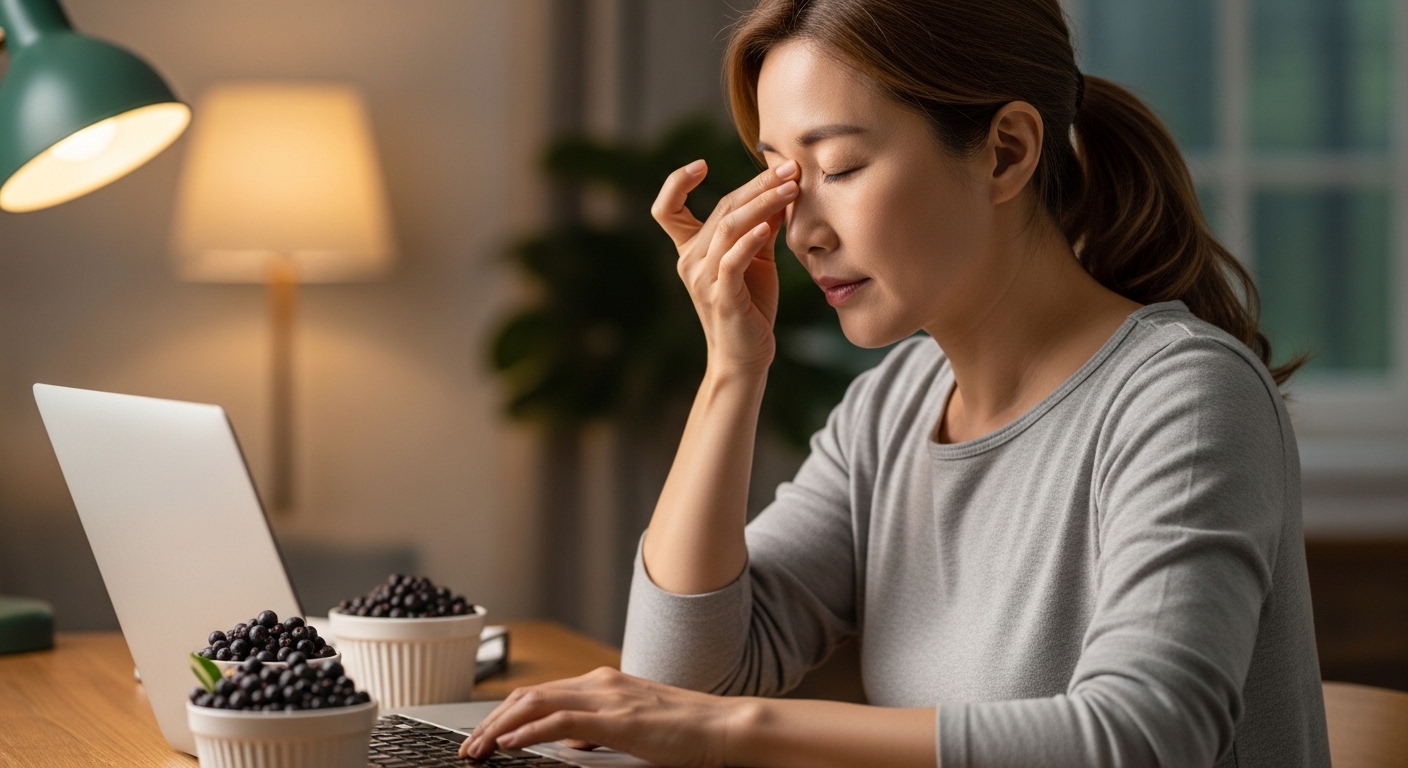 아로니아에 풍부한 안토시아닌은 망막에 있는 로돕신이라는 단백질의 재합성을 촉진합니다. 로돕신이 부족하면 시력 저하와 안구 질환이 발생하기 쉬운데, 아로니아 섭취는 이를 보완하여 야맹증 예방과 시력 보호에 기여합니다. 또한, 강력한 항산화 작용으로 인해 백내장이나 황반 변성 같은 퇴행성 안구 질환의 진행을 늦추는 데 효과적입니다.
