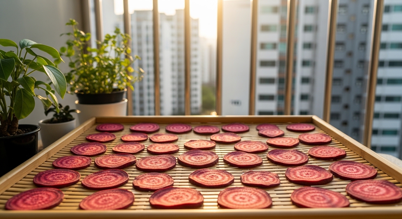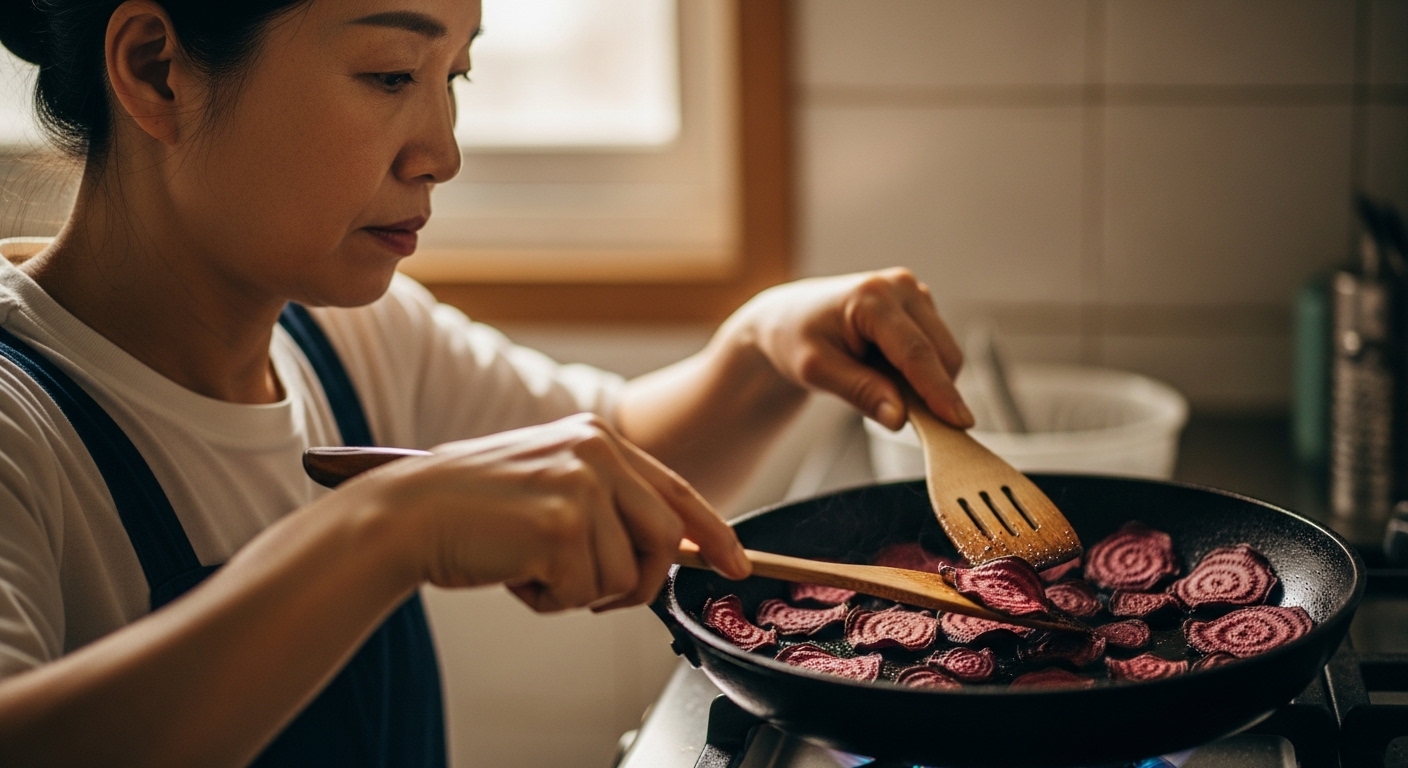 3. 수분 체크: 덖은 비트를 면장갑을 낀 손으로 만졌을 때 '바스락' 소리가 나야 장기 보관 시 곰팡이가 생기지 않습니다.