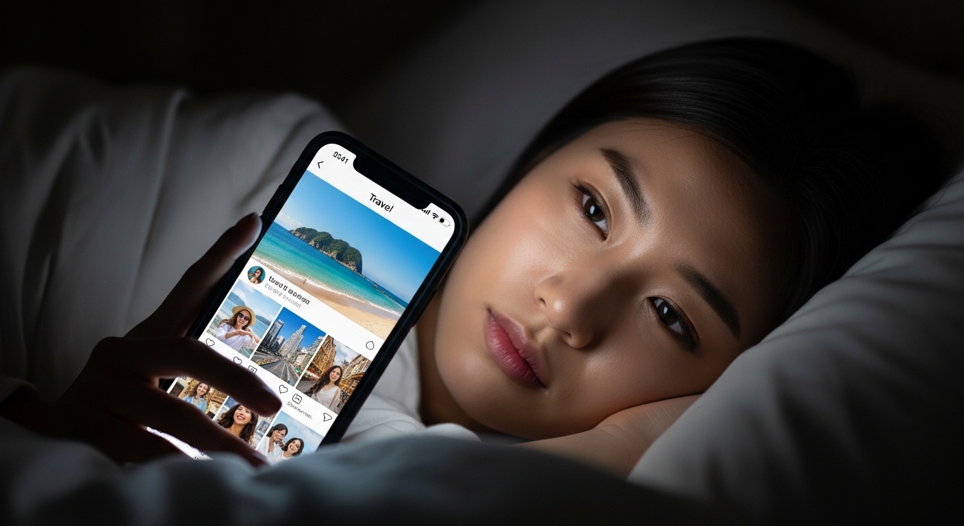 2. 사회적 포모 (Social FOMO): 친구들의 모임이나 SNS 속 화려한 여행/맛집 사진을 보며 나만 불행하다고 느끼거나 반드시 따라 해야 한다고 믿는 현상입니다.