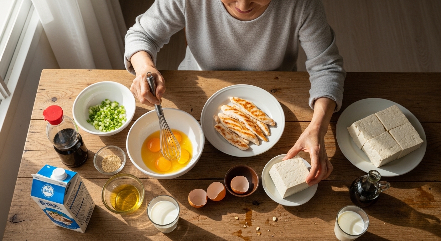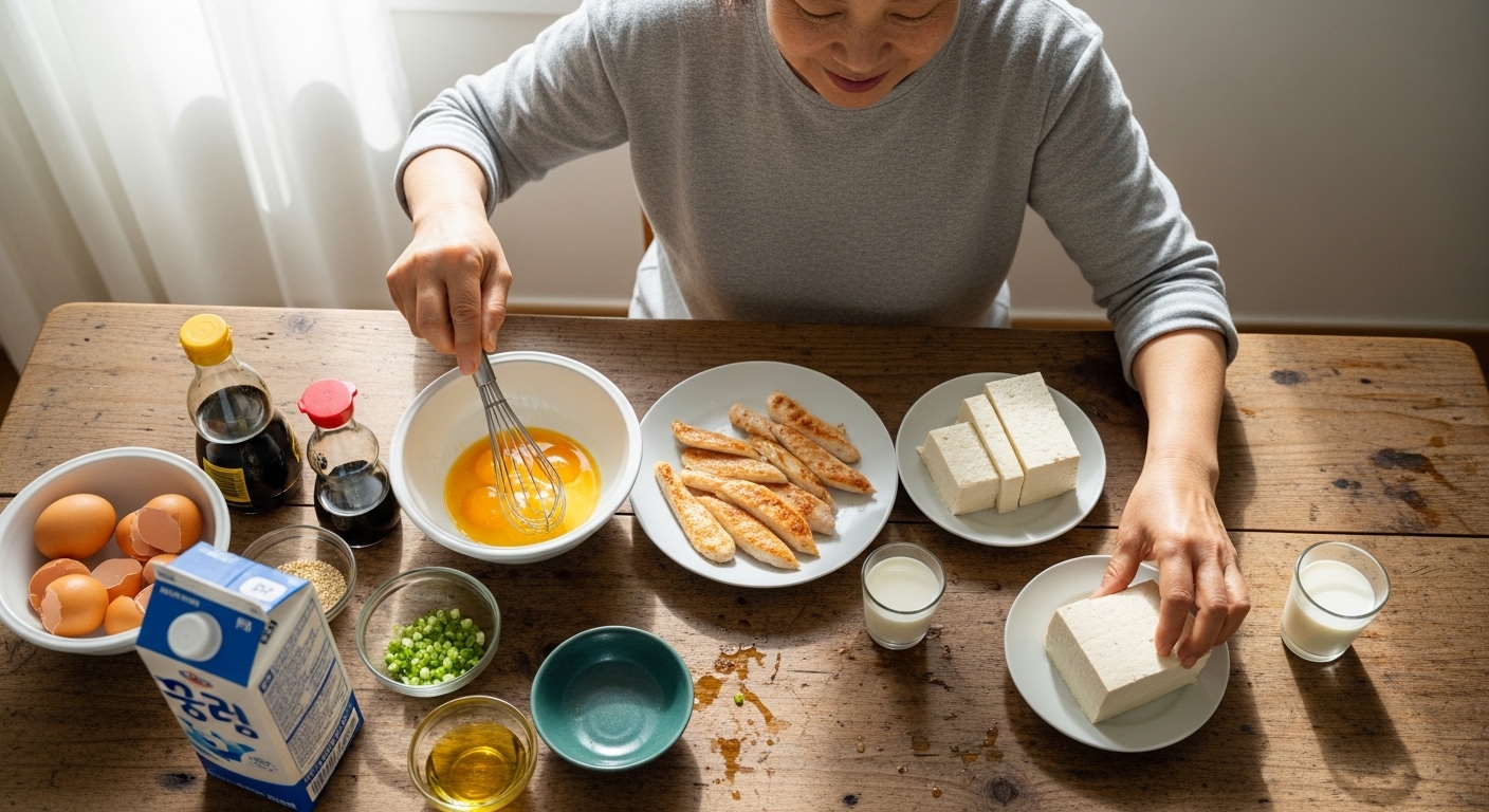 - 두부·콩류: 식물성 단백질의 대표 식품. 식욕이 없는 노인·환자에게 부담이 적습니다.