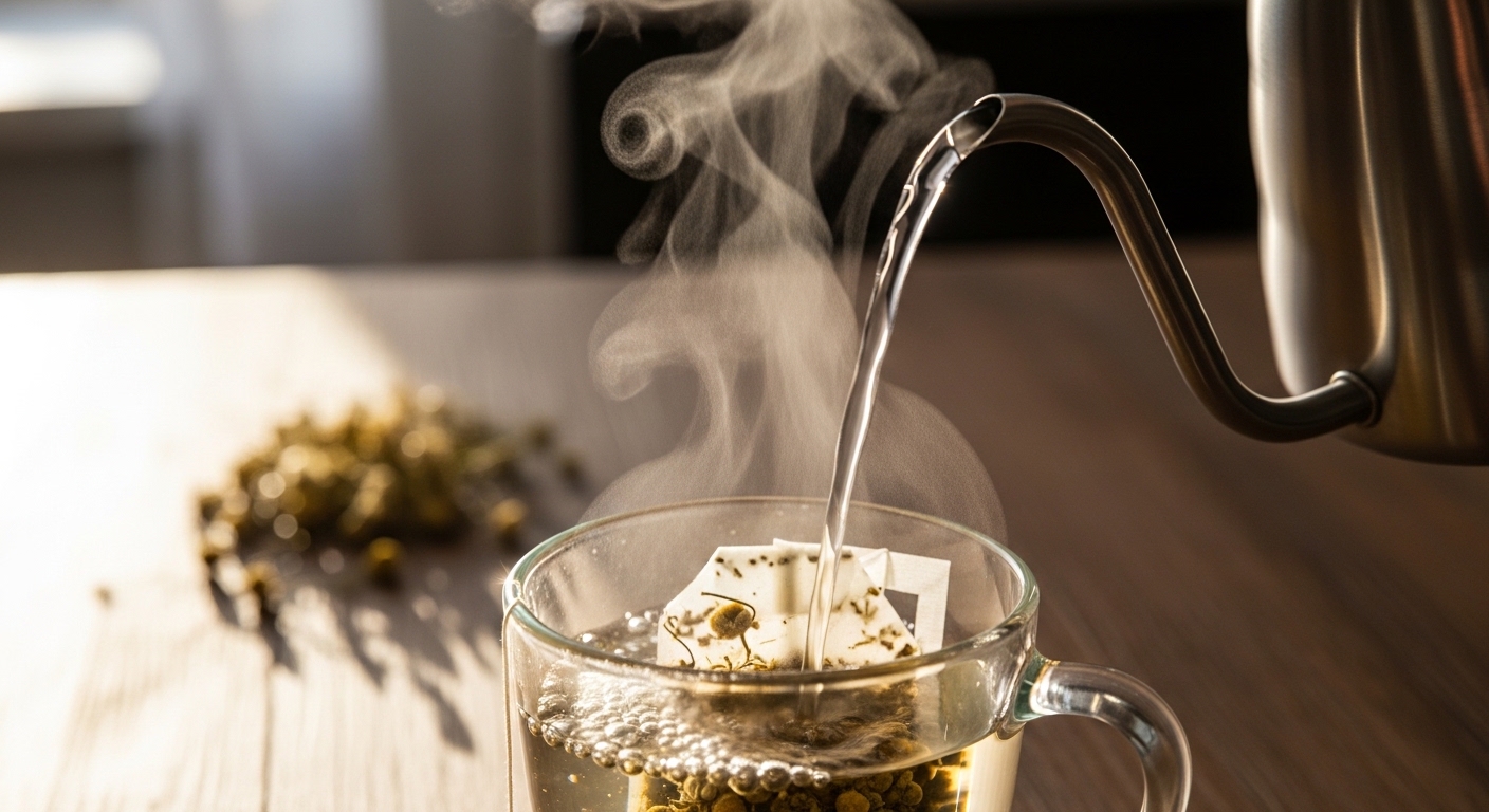 캐모마일은 너무 높은 온도에서 오래 우리면 쓴맛이 올라올 수 있습니다. 향과 효능을 모두 잡는 법은 다음과 같습니다.
