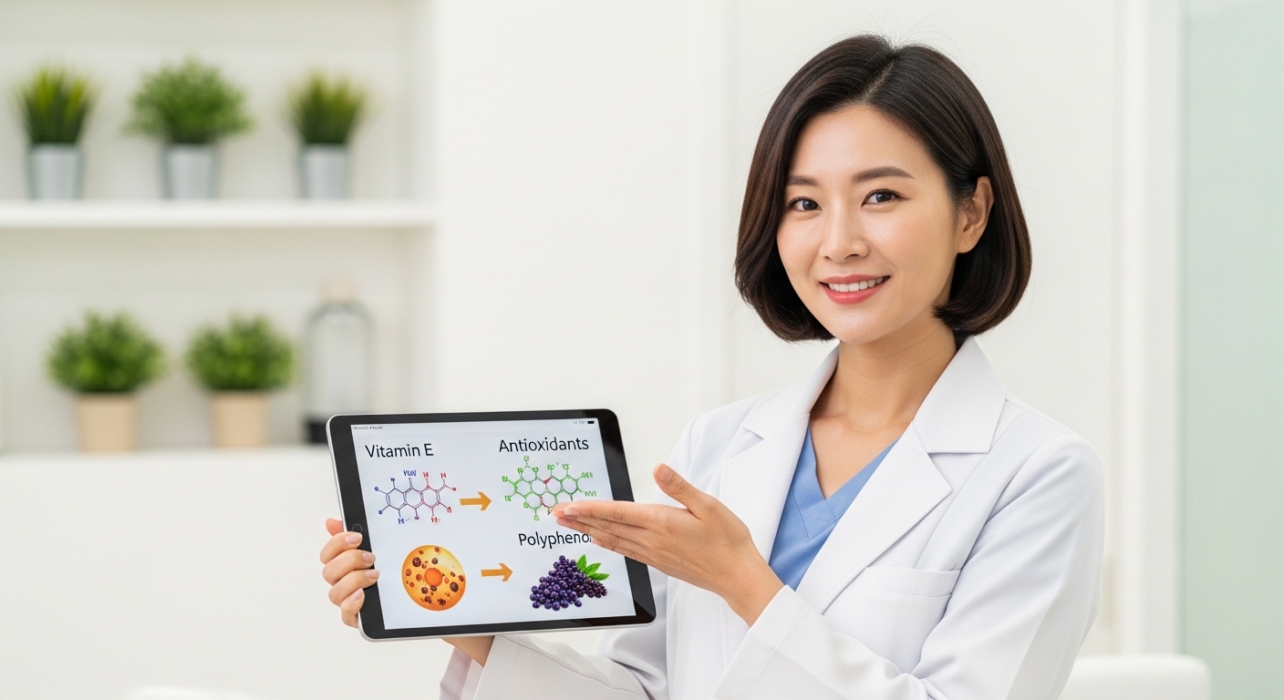 - 비타민 E: 강력한 지용성 항산화제로 세포막 파괴를 방지합니다.