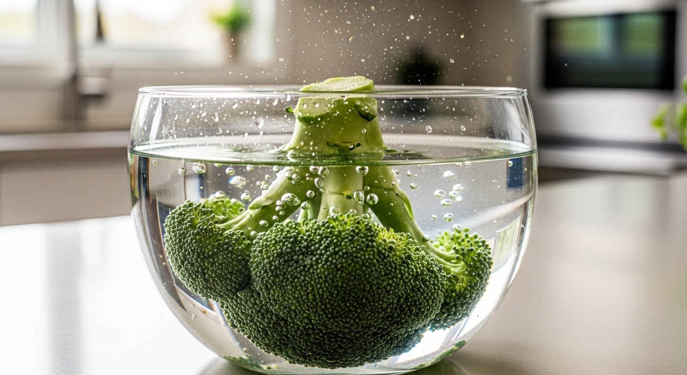 3. 흔들어 헹구기: 마지막 단계에서 물속에서 브로콜리를 상하좌우로 강하게 흔들어 꽃봉오리 사이의 이물질을 최종적으로 털어냅니다.